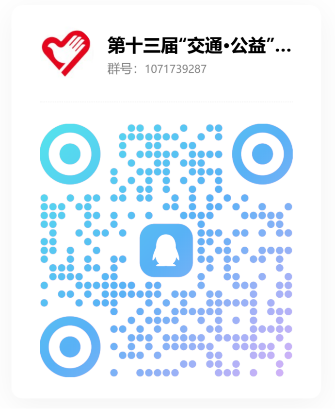 2.赛事通知:请各校级项目负责人尽快加入第十三届“交通·公益”志愿服务季暨西南交通大学第四届志愿服务项目大赛通知交流QQ群,群号码为:1071739287(二维码见下图),仅校级队伍须进入该群,院级队伍由学院统一通知管理;