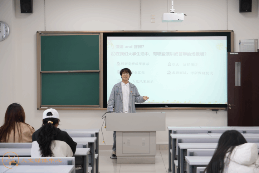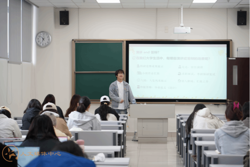 叶镓豪学长结合自身丰富的答辩与演讲经验,主讲第三场课程“演讲与答辩的技巧应用”。他从“筋骨—内功—外功—修炼”四个层面系统解析优秀演讲与答辩的核心要素,提出“主线+支线+外延+升华”的高阶内容构建策略,并现场展示优秀讲稿与PPT范例。在表达与临场方面,他强调“语速控制”“人设塑造”与“即兴应答”的技巧,鼓励同学们“多练多讲”,在实践中不断提升综合表达能力。