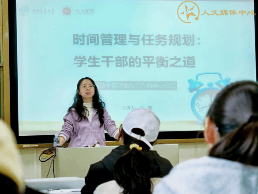 学生骨干是高校育人体系中的重要桥梁,是推动校园文化建设与学风发展的关键力量。为进一步提升学生骨干的综合素养,2025年10月25日上午9点,人文学院于西南交通大学犀浦校区X30616教室开展了三场面向学生骨干的能力培训会,由研究生“红路”理论学讲团成员、人文学院2024级中国语言文学专业硕士研究生郦炫竹,人文学院辅导员文璐,以及土木工程学院2025级桥梁专业硕士研究生、第三十二届学生会主席团成员叶镓豪联合主讲,围绕生态文明建设、时间规划管理与演讲答辩技巧展开深度分享,学院全体学生骨干积极参与。