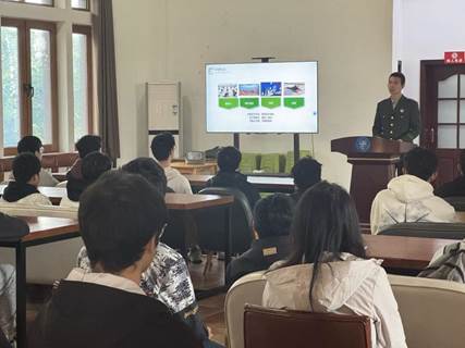 丁荣凯向团员们介绍了入伍政策,并分享了他在边疆的军旅点滴。从整理内务、争创流动红旗的日常,到喀什夜色中坚守岗位的经历,他用具体场景展现出边疆军人的奉献日常。同时他也鼓励大家积极投身军旅,用实际行动和青春热血奉献祖国,坚守初心、践行使命,争做新时代的爱国青年。