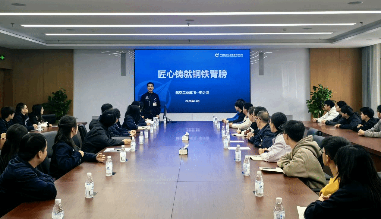 在校友座谈会环节,来自西南交通大学的校友代表分享了在成飞工作成长的体会,同学们积极提问,校友代表耐心解答。传授了校园学习与职场奋斗如何衔接,增进了在校生对航空事业和成飞文化的了解。