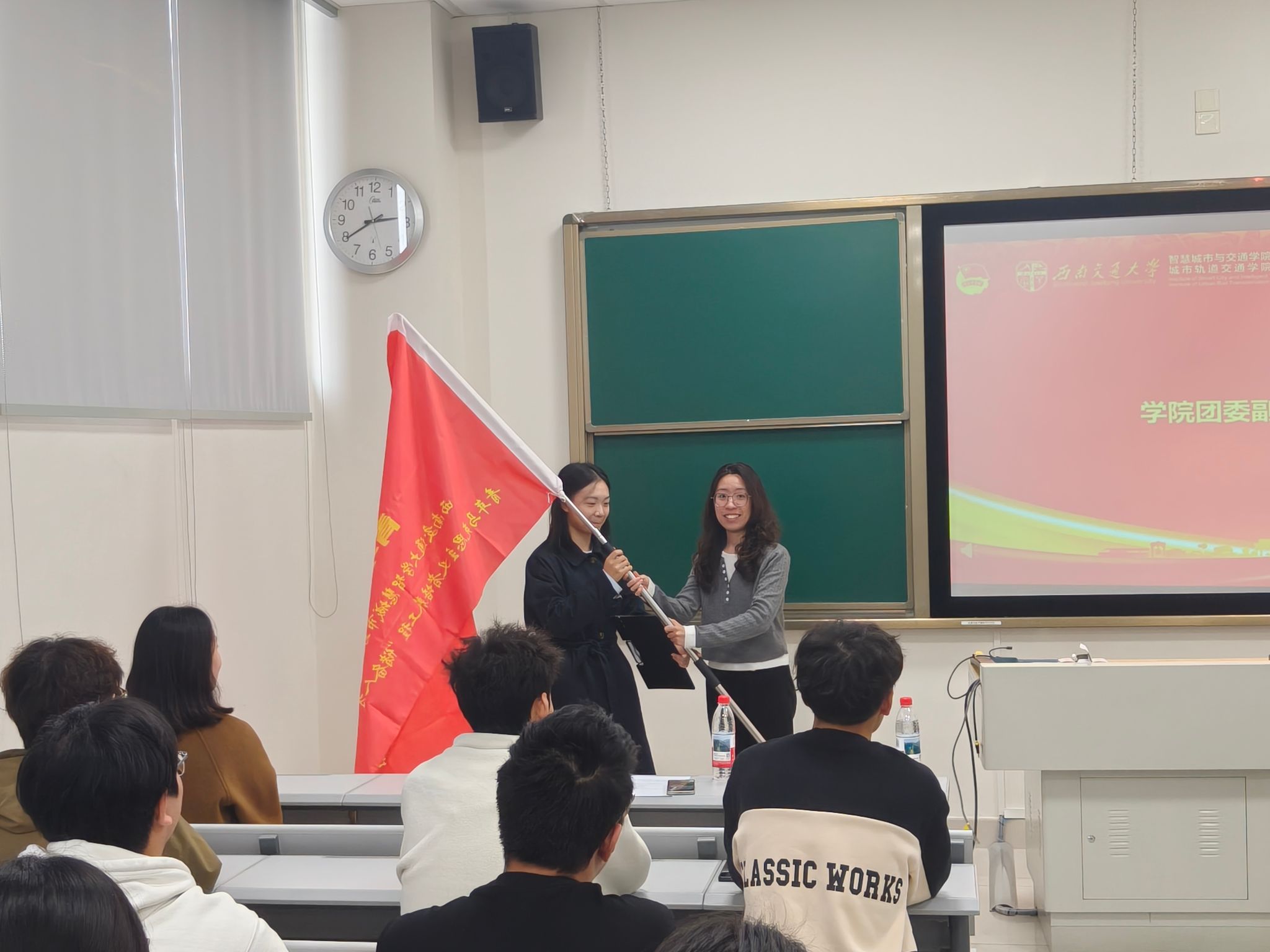 随后,魏岚为本次培训班授旗,王子琦宣布学院第三期青马工程“储备人才”培训班正式开班。