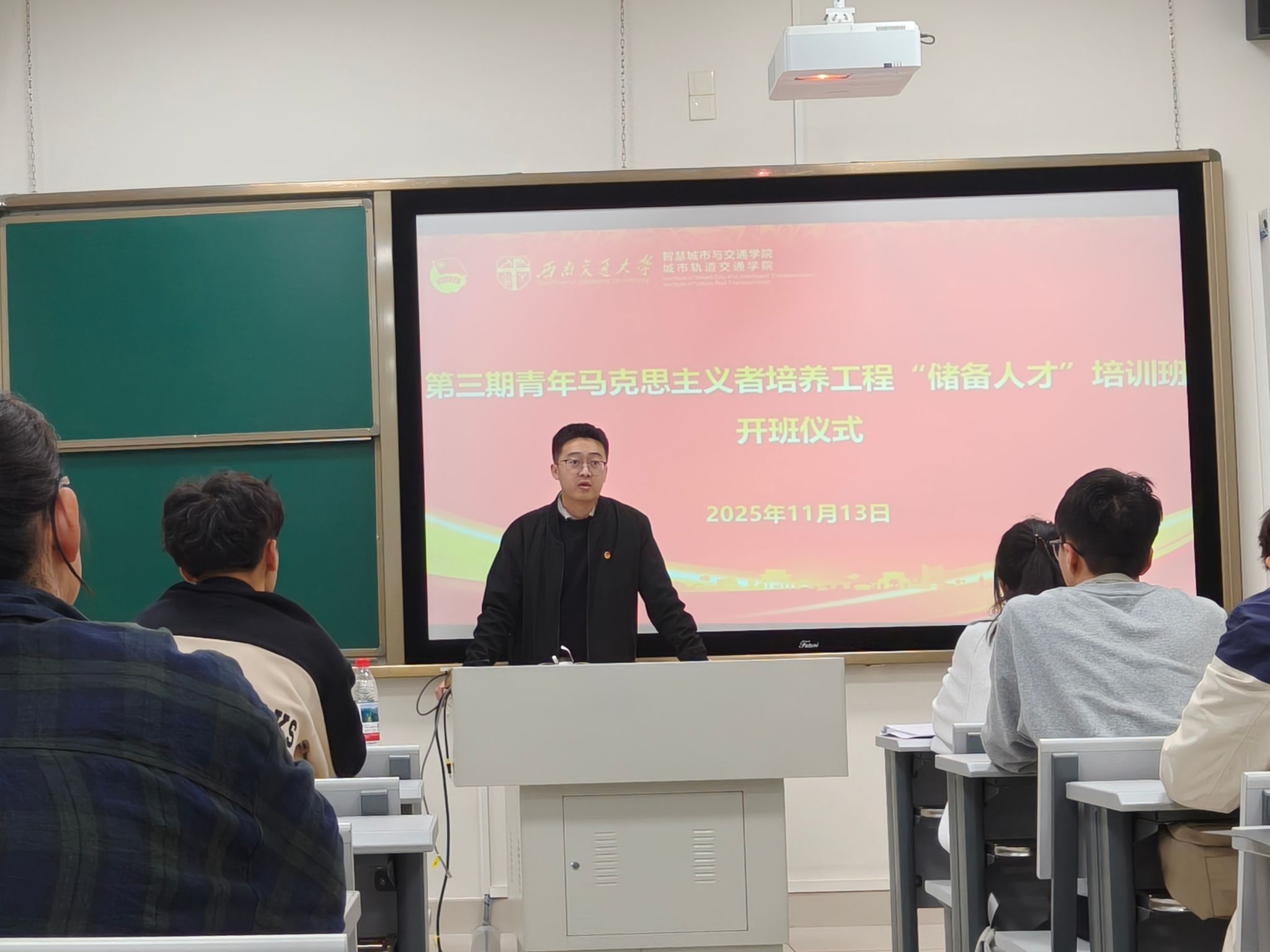 为学习贯彻习近平总书记关于青年工作的重要思想,深入推进学院“青马工程”工作,11月13日,智慧城市与交通学院第三期青年马克思主义者培养工程“储备人才”培训班开班式暨第一课于X30616举行。学院团委副书记王子琦、魏岚及全体学员参加。本次开班仪式由王子琦主持。
