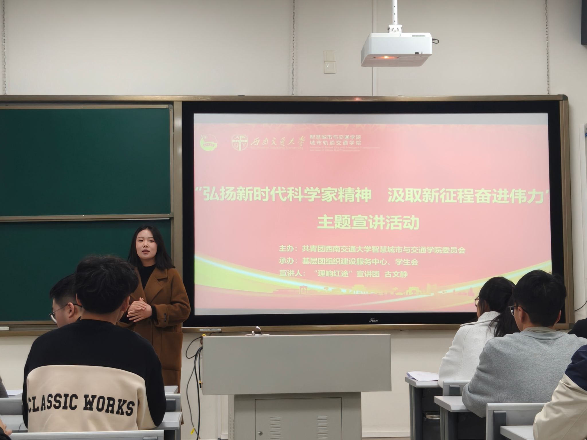 开班仪式后,学院邀请“理响红途”宣讲团成员古文静开展“弘扬新时代科学家精神 汲取新征程奋进伟力”主题宣讲。她讲述了西南交大校友卢肇钧、王鸿祯院士的事迹,阐释科学家精神核心内涵,并提出践行方向,倡导学员们将科学家精神融入学习生活日常,深耕专业、勇于创新,主动学习宣传科学家事迹,以青春之力助力国家科技自立自强,争做担当民族复兴大任的时代新人。