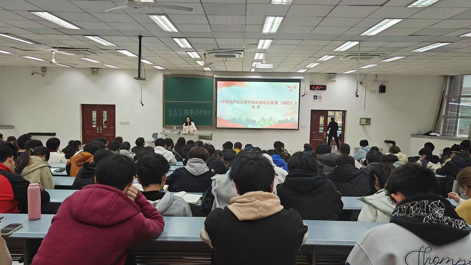 2025年11月13日,学院团委书记、“青年讲师团”成员何蕊芯老师以《青年兴则国家兴,青年强则国家强——新时代的青年人如何有所作为?》为题,围绕新时代青年理想信念与责任担当展开讲解,并细致解读《中国共产主义青年团纪律处分条例(试行)》核心内容,鼓励学员以先辈为榜样,在学术中攻坚克难、在实践中勇挑重担,锤炼过硬作风,让青春在奋斗中绽放光彩。