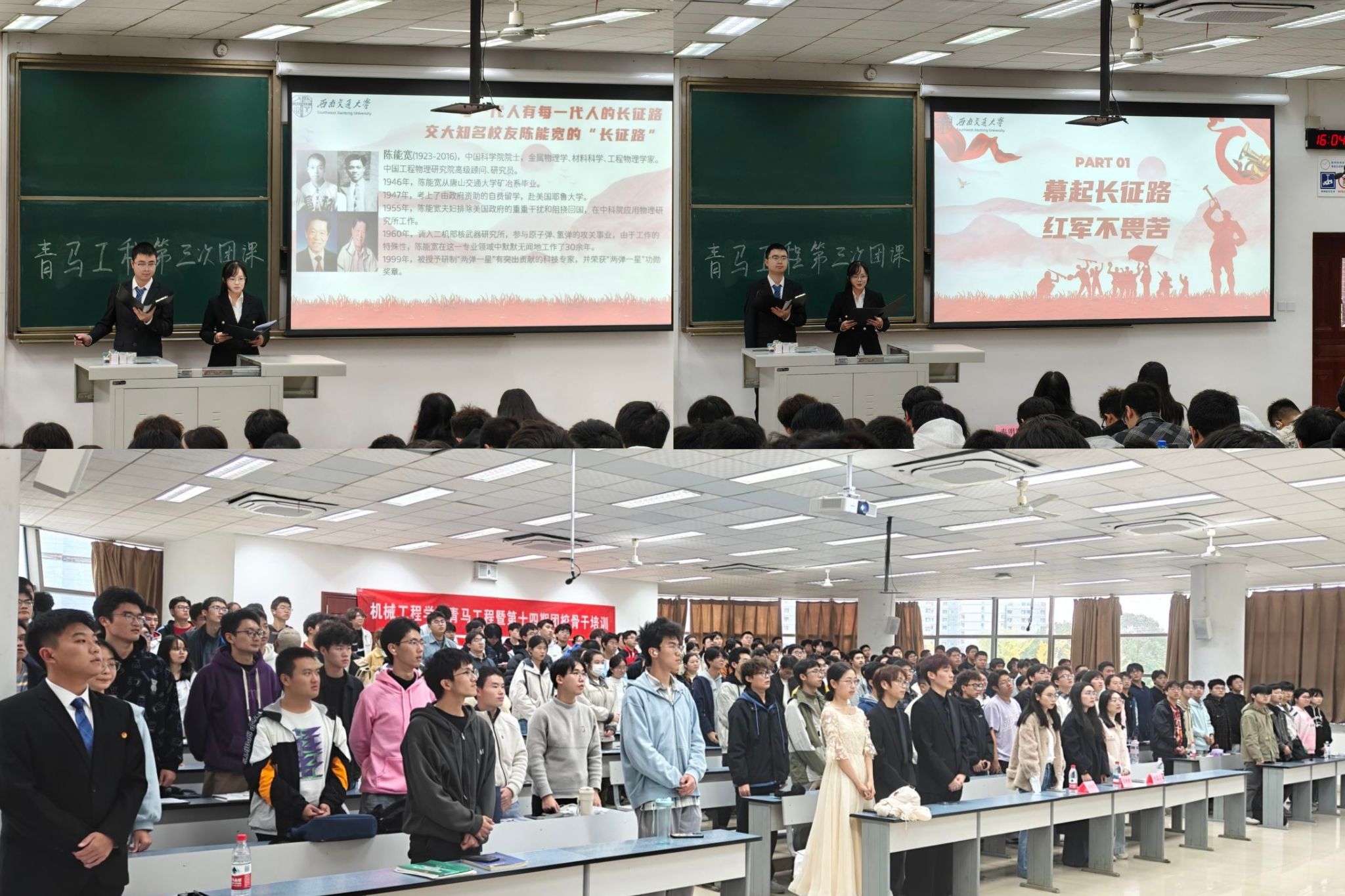 2025年11月13日,西南交通大学《红军不怕远征难》讲演团成员以“长征精神 永放光芒”为主题,深化学员理想信念教育。讲演团创新采用“音乐+叙事”沉浸式展演形式,在《七律·长征》激昂旋律中,通过爬雪山、过草地等史实细节还原长征艰辛,穿插军民鱼水情、战友互助故事传递革命初心,融入泸定桥战役影像彰显红军勇气,最后以陈能宽院士科研报国事迹衔接时代使命,让长征精神在青年中薪火相传。