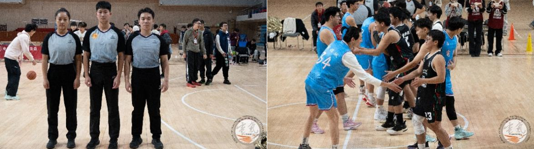 此次比赛的裁判由来自体育学院的三位国家一级裁判员担任,赛前两队球员依次与裁判员、对方球员握手致意。