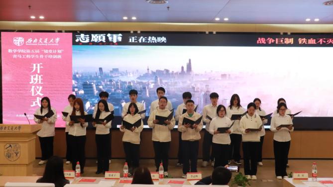 全体学员共上一堂沉浸式音乐思政课《青春向党・数绘复兴——数学人眼中的精神密码》。课程沿着中国共产党百年发展时间轴,串联我校从山海关建校至今的精神传承,通过“觉醒年代·信仰启航——新民主主义革命时期”“建设岁月·实干筑基——社会主义革命和建设时期”“改革浪潮·创新破局——改革开放和社会主义现代化建设新时期”“复兴征程·青春担当——中国特色社会主义新时代”四个篇章生动展现了中国共产党人的初心使命。学员们通过诵经典、唱红歌、观院士、互动问答等形式,深刻感悟百年党史以及西南交通大学从山海关建校至今的精神传承。