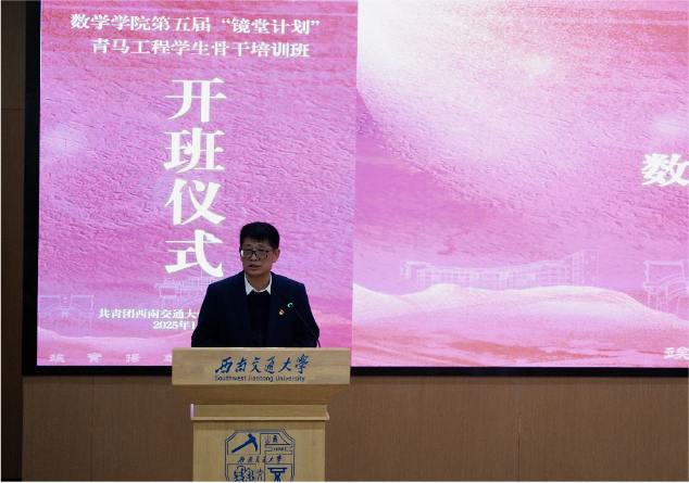 11月25日,数学学院第五届“镜堂计划”青马工程学生骨干培训班开班仪式在犀浦校区图书馆一号报告厅举行。数学学院党委书记李志辉,党委副书记黄祥,马克思主义学院“融通共育”导师徐倩,数学学院“青年讲师团”成员及百余名青马工程学员参加活动。仪式由数学学院团委书记张素子主持。