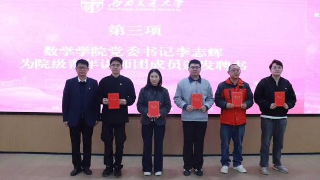 为充分发挥优秀青年校友的榜样引领作用,进一步完善党支部与团支部、学生群众与学院彼此支持、相互成就的支撑保障机制,学院团委面向青年教师、同学招募优秀青年讲师,组建数学学院“青年讲师团”队伍。李志辉为学院“青年讲师团”成员颁发聘书。