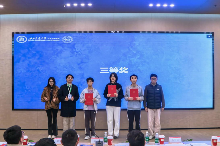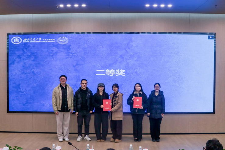 本次竞赛邀请到土木工程学院教学主管郭瑞老师、土木工程学院结构工程系教师赵雷老师、土木工程学院团委副书记兼2025级辅导员杨颖钊老师、2025级辅导员郭哲维老师、彭政涛老师、梁涛老师、孙雨函老师担任赛事评委。