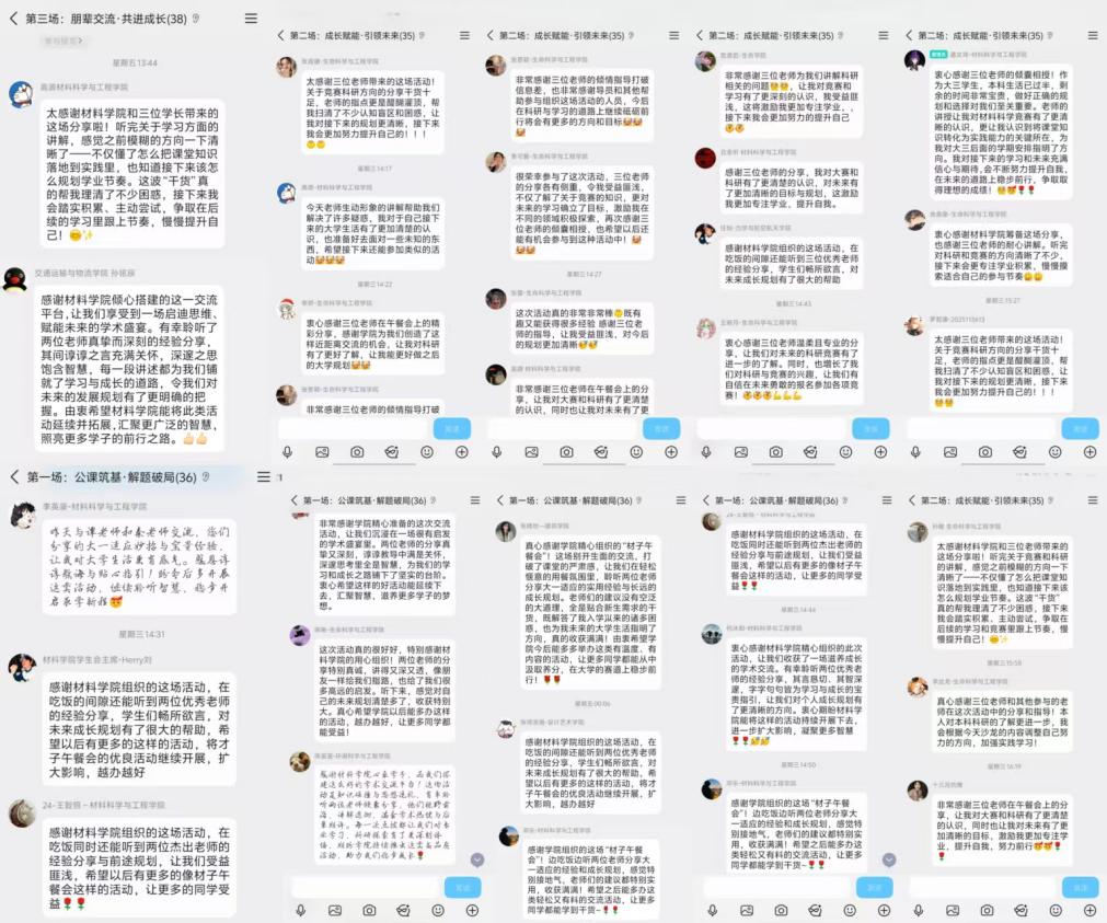 此次沙龙是学院“四维一体”学风建设体系的生动实践。同学们纷纷表示,这种形式的交流既解决了学习中的实际困惑,又增进了师生之间的情谊。材料学院将持续开展此类师生交流,严格遵循学校“课程精品化、活动品牌化、服务精准化”方向,通过持续创新师生交流形式,打造“午餐沙龙”等品牌活动,让学术交流更接地气、更入人心,助力学生在专业素养与创新精神的双轨上稳步前行。