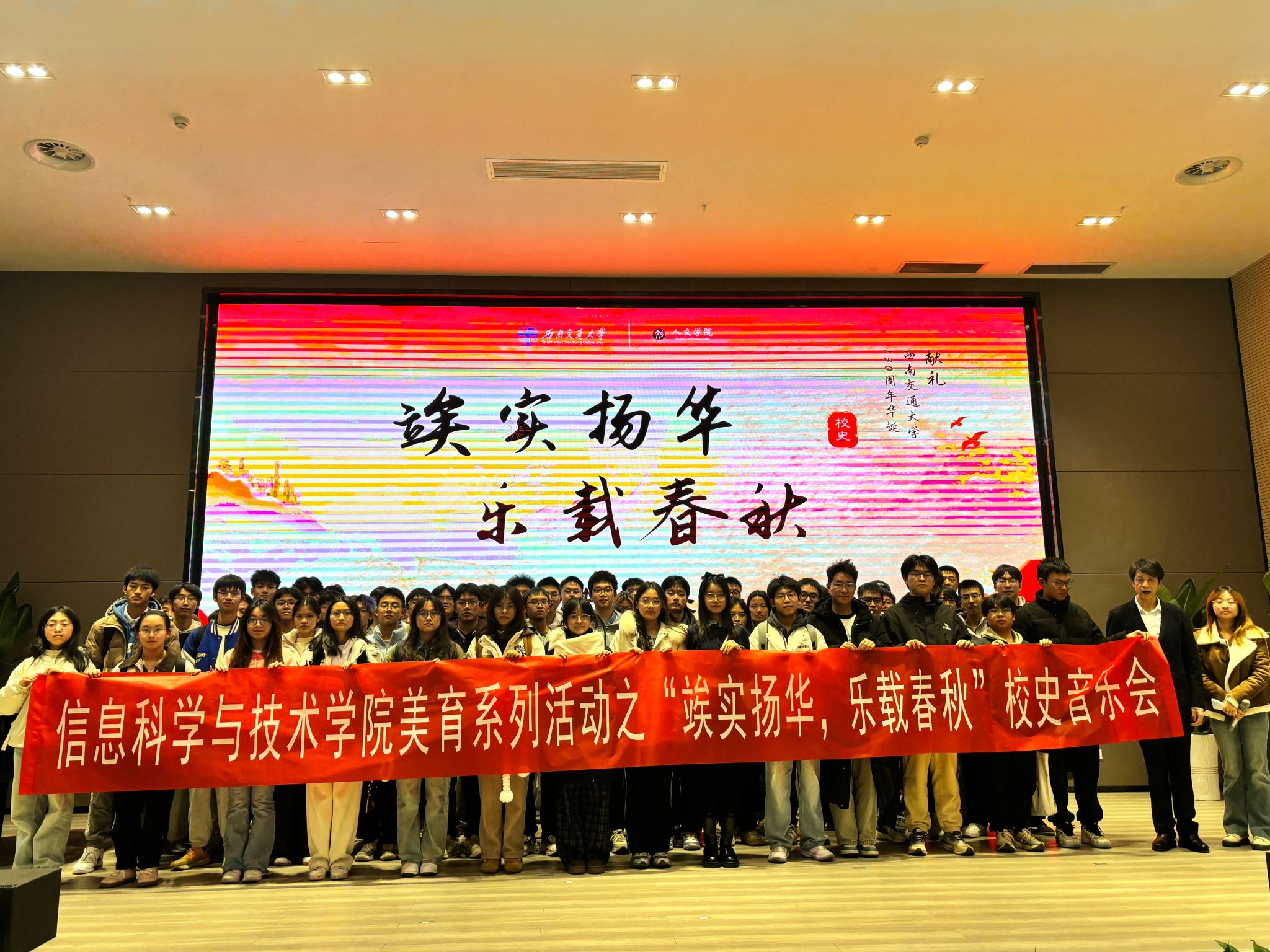 从跨院乐理课堂到校史音乐展演,两期美育活动以多元形式为信息学子铺就了美育浸润之路,也让“融通共育、以美育人”的育人理念在实践中得到了生动诠释。未来,学院将继续推动美育工作与人才培养各环节深度契合,持续丰富音乐、美术等特色美育供给,让美育如春风化雨般滋养学子成长,成为助力信息人才全面发展的重要途径。