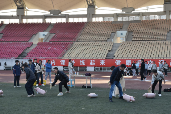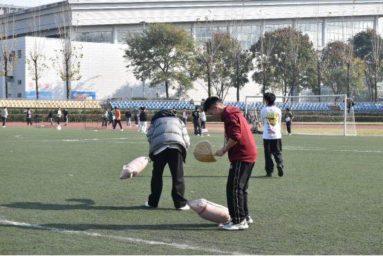 本次趣味运动会以“跃动青春,协作共赢”为主题,将竞技与娱乐、个人与集体巧妙融合,在操场与赛道交织的欢腾声里,为师生呈上一堂别开生面的体育思政课。赶猪进笼的扇影翻飞、一圈到底的肢体接力、沙包与纸飞机划出的抛物线,让“个人项目”成为同学们挑战自我、释放创意的舞台;而蒙眼射门后的跌跌撞撞、踩气球大战中的惊呼爆笑、枕头大战里的软弹横飞,又把“趣味”二字写进每一次心跳,让力量与灵敏在加油声中被重新丈量。传统踢毽子限时翻飞,激发的是滚烫的少年意气;投掷、旋转、跳跃之间,青春的身姿与冬日的阳光同框,定格成最鲜活的校园剪影。