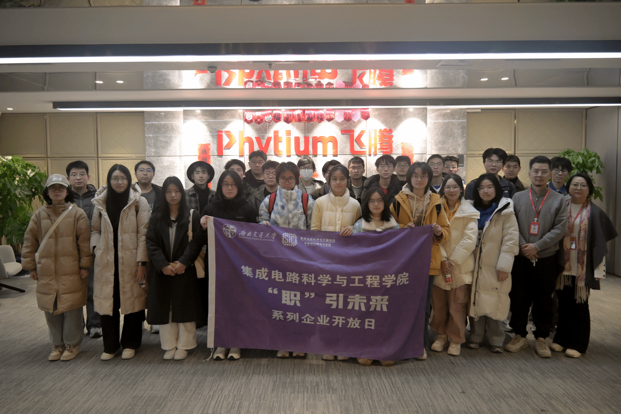 为深入学习贯彻习近平新时代中国特色社会主义思想,引导青年在社会实践中“受教育、长才干、作贡献”,学院持续深化产教融合,积极搭建校企协同育人桥梁。2026年1月8日,学院组织“职”引未来企业开放日暨“探芯”返家乡社会实践专项活动,辅导员苏放带领25名2025级本科生,先后前往飞腾信息技术(成都)有限公司、龙芯中科(成都)技术有限公司开展实践调研。活动通过专家授课、现场讲解、互动交流等形式,使同学们沉浸式感知国产芯片产业的发展活力与技术竞争力。