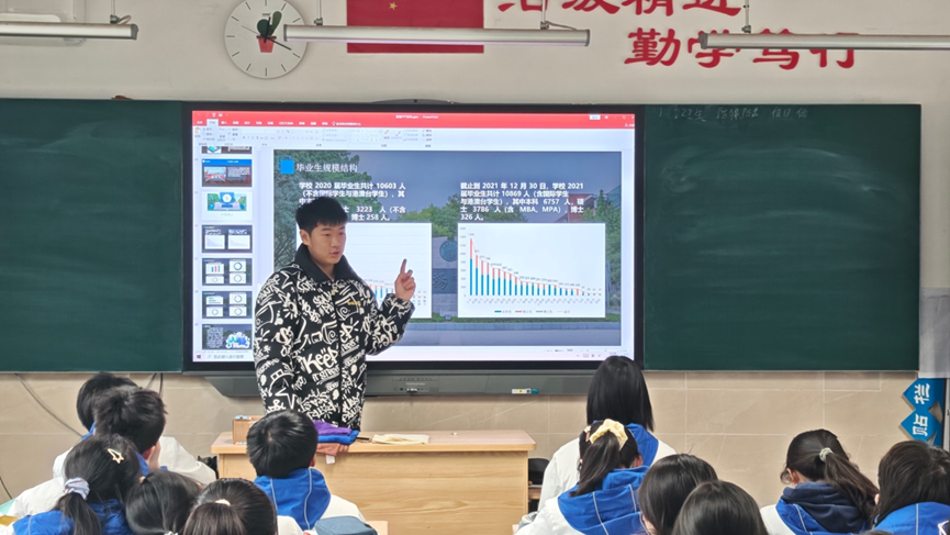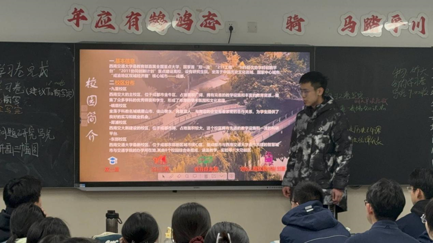 为充分发挥实践育人功效,鼓励广大学子回到家乡中学,通过宣讲会宣传交大历史、交大文化和交大特色,西南交通大学-利兹学院积极倡导并鼓励广大学生充分利用朋辈影响力,结合自身学习成长经历在寒假期间开展“返家乡”寒假招生宣传,分享在交大的学习生活经验,帮助广大中学生深入了解交大办学特色和人才培养模式,动员更多优秀学子报考交大。
