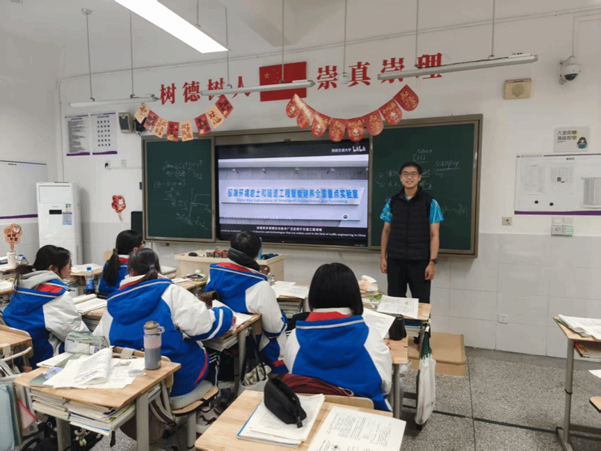 重回高中母校宣讲西南交通大学,我倍感荣幸与责任。向学弟学妹详述交大百年底蕴、土木工程和交通运输王牌专业实力及科创平台,分享校园生活与成长感悟,耐心解答升学疑惑。既重温青春岁月,也传递交大严谨治学与严格要求的学风,愿以微薄之力引航,盼更多少年怀揣热爱,奔赴交大,筑梦前行,书写精彩华章。
