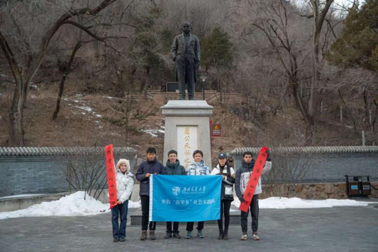 1月27日,实践队来到京张铁路最初的起点,也是由詹天佑先生亲自设计的西直门车站。站在车站门前,队员们仿佛回到了120年前,看到了车站中熙熙攘攘的人流,看懂了詹天佑先生为中国铁路事业立下的不朽功勋,更读懂了老一辈科学家 “功在千秋、利在社稷” 的家国情怀。