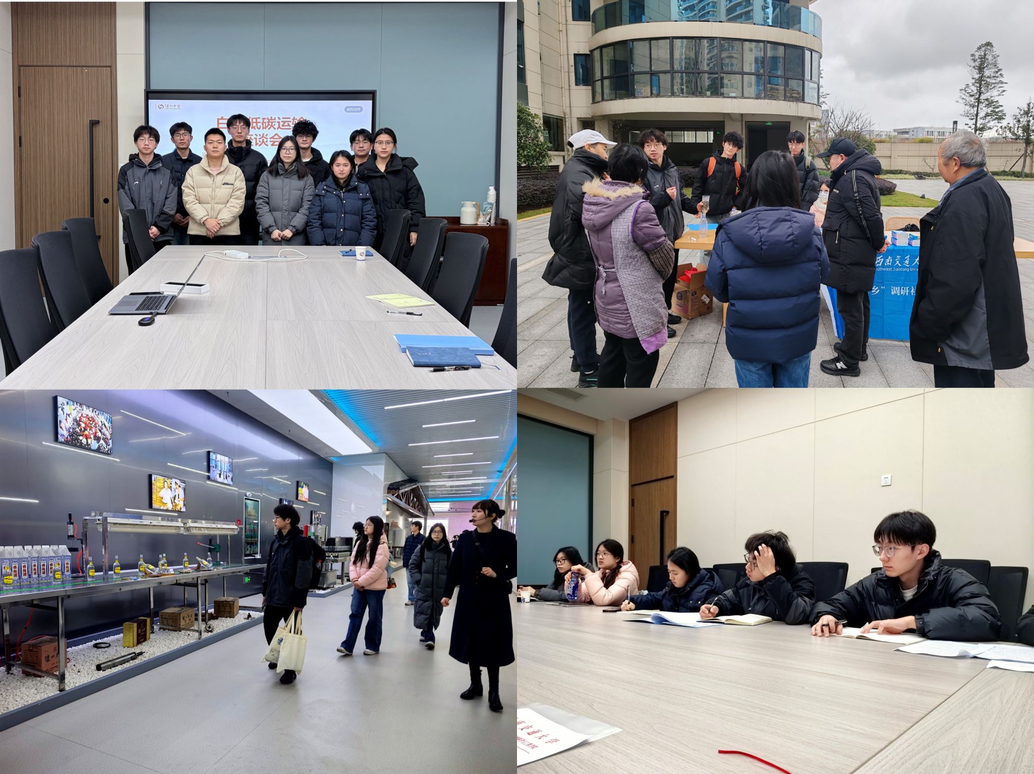 学院联合交运学院组建“碳寻酒业脉,物流通未来”实践队,赴泸州老窖开展产业绿色转型调研。团队走进智能包装中心、智慧物流中心,了解企业在节能降碳、资源循环、VOCs治理等方面的实践成果,重点调研酒糟资源化利用、污水处理循环、低碳物流运输等关键环节。队员们结合专业所长与企业开展交流研讨,为传统酒业绿色低碳发展提供青年视角,同时走进社区开展环保科普宣传,推动绿色理念深入人心。