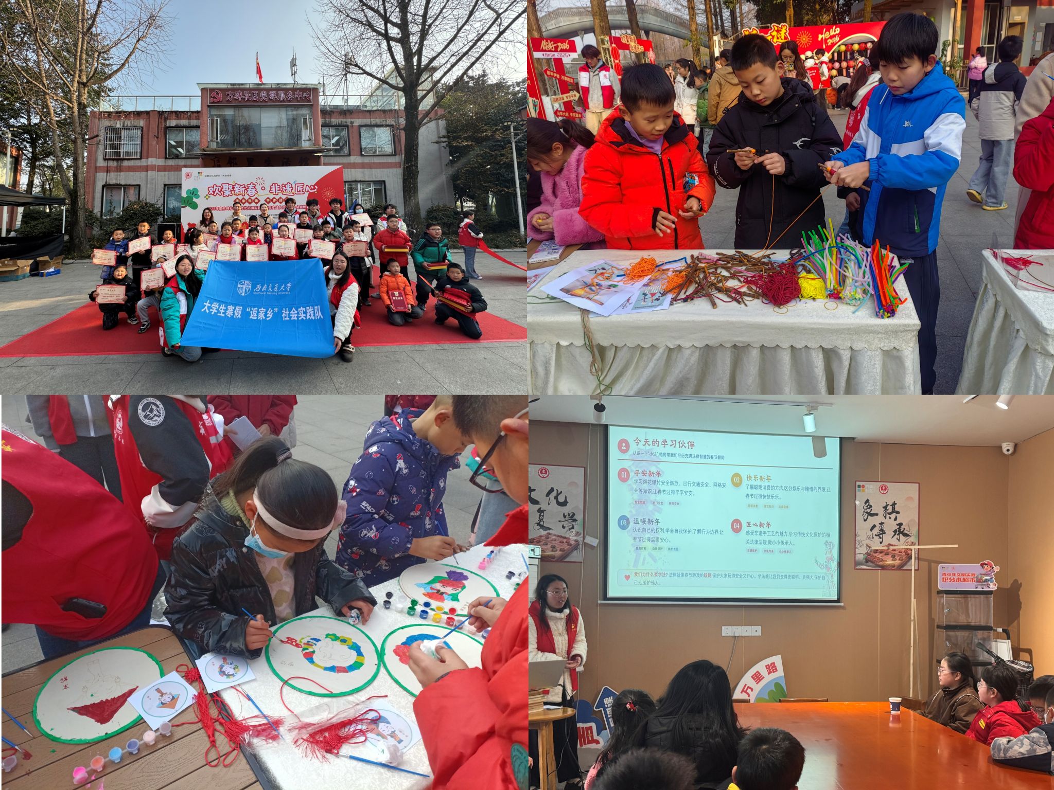 学院“青春归巢,筑梦家乡”实践队赴郫都区石桥村、仁义村开展志愿服务。队员们开展义诊协助、安全宣传、手工教学、环境清扫、困难群众慰问等工作,同时通过问卷调研收集乡村发展需求,以实际行动改善乡村环境、服务村民生活,为乡村振兴注入青春活力。