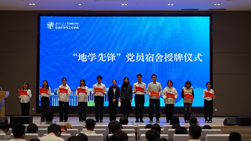 为进一步发挥党建引领作用,会议为“地学先锋”党员宿舍授牌。党委学生工作部副部长谢力和学院党委副书记曾洁为党员宿舍代表授牌。