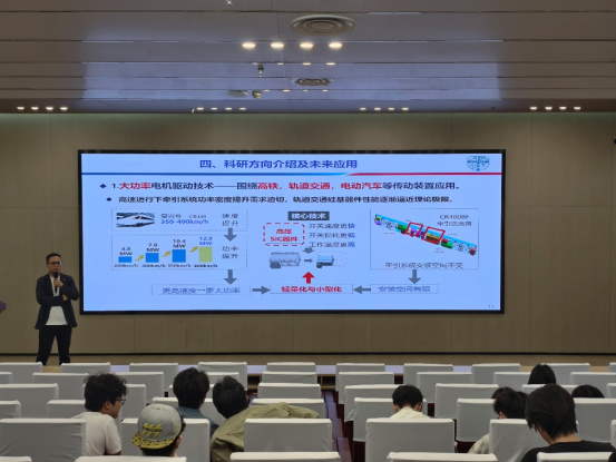 讲座伊始,薛诚以自身科研求学经历为引,分享了深耕电力电子与电机驱动领域的探索历程与成长心得。他结合多年学习实践与科研攻关经验,系统梳理了从专业基础夯实、科研创新突破,到工程实践落地、产业应用转化的全链条成长路径,以脚踏实地、潜心钻研、精益求精的治学态度,为在场学子树立了清晰的学习标杆与前行方向。