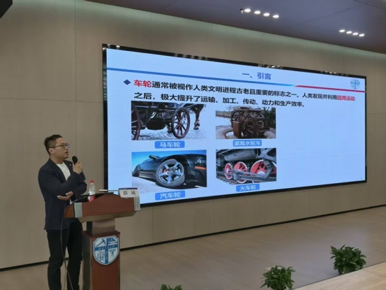 在专业知识讲解环节,薛诚教授以“车轮”为切入点,串联起人类动力技术的发展变迁。他从基础物理原理出发,用通俗易懂的语言,深入浅出讲解发电机与电动机的核心工作原理,厘清电机能量转换的底层逻辑;同时结合多元应用场景,展现电力电子技术的广泛应用价值,让同学们深刻体会学科发展与国家战略需求的紧密关联。针对专业核心内容,薛诚以国家重点产业典型场景为案例,具象化解读电力电子变换器工作逻辑,提炼出“以弱控强”的学科核心精髓。他以“接水控制水位”的生活化案例,生动阐释负反馈控制思想,帮助同学们轻松理解复杂工业控制逻辑;还全方位拆解特斯拉逆变器结构,完整呈现前沿科研成果向工程产品转化的全流程。