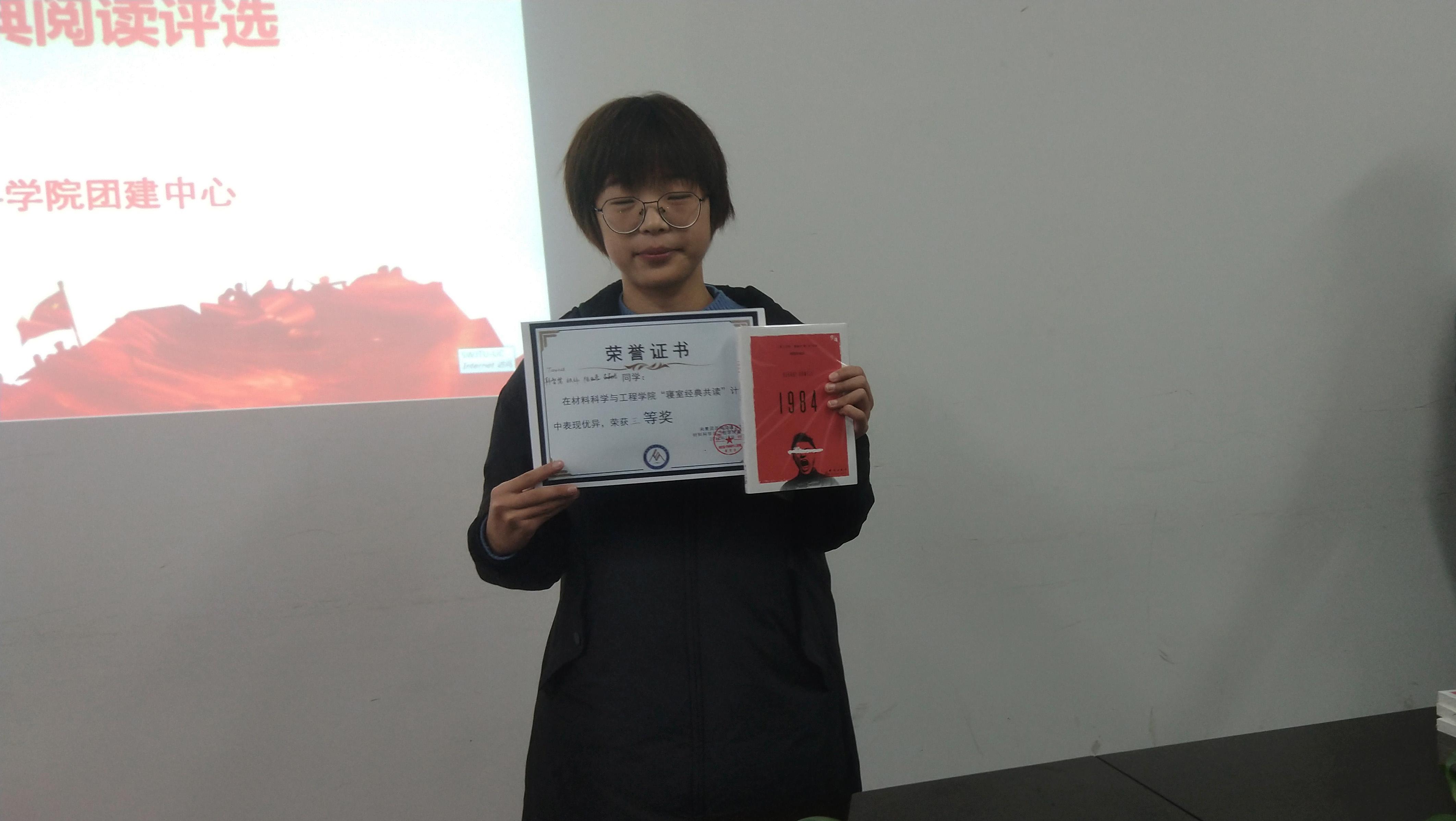 评选的二等奖是来自T104033的杨梦毅和王琪琦,她们在此次活动中积极参与,她们热爱阅读,更将活动的意义体现在阅读的字里行间里。阅读书目包括了《挪威的森林》《岛》《人性的优点》等等。