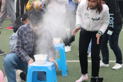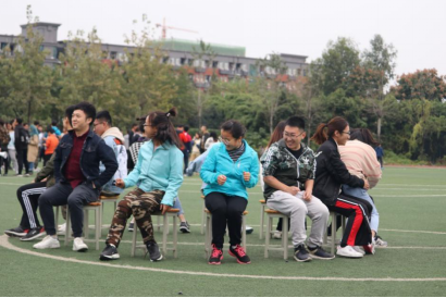 第一个项目是“抢凳子”,玩法普通,但看似简单的游戏却被参赛者演绎得激烈精彩,扣人心弦,不时有参赛同学“出格”的举动引发台下观众笑声连连。正式比赛全部结束后,台下的观众也跃跃欲试,争先恐后地上台参加这个游戏,胡博老师、宋俊宏老师和黄静瑶老师也一同上场体验了一把。