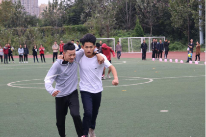 接下来是“往返跑”项目,它考验了同学们相互配合与协调的能力,有的同学只顾着自己的节奏而不进行协调配合,阵脚全乱;但也有同学配合默契,宛如一个人在跑,精彩表现引得台下同学欢呼不断。