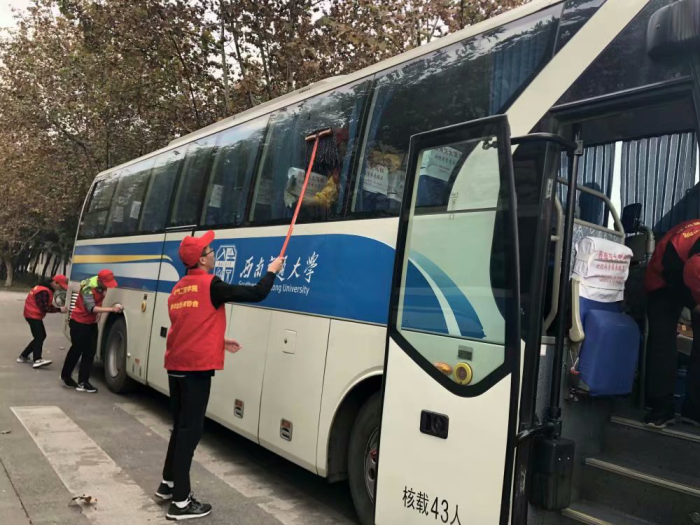 看着最后洁净的校车,志愿者们内心充满着喜悦与自豪。
