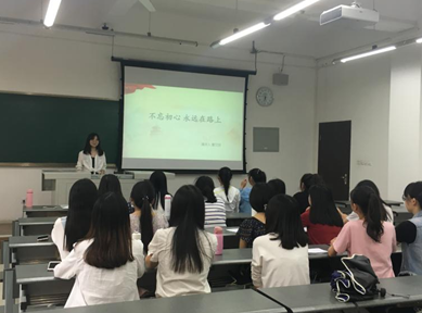 随后,由同学们进行主题演讲。谢童心同学以“坚守一份初心”为题进行了慷慨激昂的演讲,她说:“不忘初心,方得始终,人是如此,国也是如此。”作为中国未来的我们必须坚守党的初心,自己的初心。黄文悦同学以“不忘初心,永远在路上”为题也发表了自己的感想,不忘初心,需要坚持,梦想因坚持而伟大。路漫漫其修远兮,吾将上下而求索,梦想的征途需要奋斗。