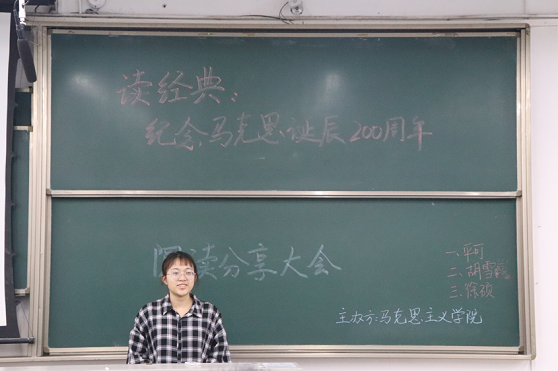 5月31日晚7点,为纪念马克思诞辰200周年,由校团委主办、马克思主义学院分团委承办的马克思主义经典著作读书会在犀浦校区举行,本次大会由杨柳风主持。