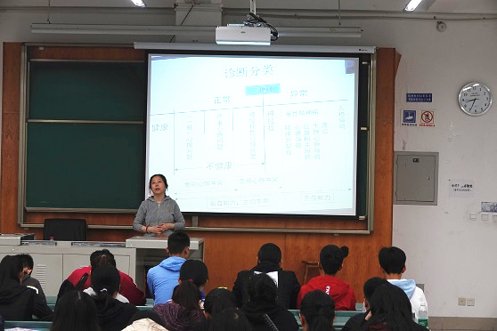 在讲座开始前,同学们收到了由西南交通大学心理研究与咨询中心提供的有关心理问题的资料。在讲座中,曾毅老师主要讲解了对于心理问题的诊断分类。首先,曾毅老师以科普心理学知识开场,详细地为同学们介绍了人们心理上的特征,拓展了同学们的知识面。紧接着,曾毅老师举例向同学们简要介绍了精神异常者的状态反应,区别了其与心理疾病的差异,并提醒同学们一旦察觉自己心理异常要主动接受咨询与就医,以及了解更多与心理相关的知识,来保持自己心理的健康。