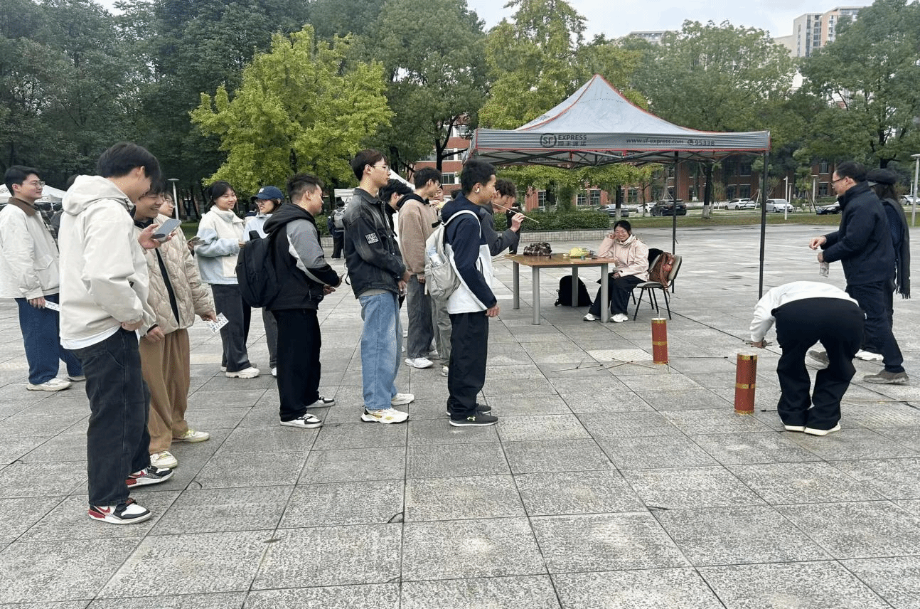游园会历时八小时,匠心独运地将孔子的思想精髓与现代趣味元素相融合,精心设计了九个趣味小游戏。每个游戏区均吸引了众多参与者,活动现场欢声笑语不断,洋溢着浓厚的文化气息。其中,“时空对话”以笔墨为媒介,展开了一场跨越时空的温暖交流,传递着陌生人之间的善意与共鸣。“猜灯射虎”让大家尽情体验传统灯谜的智力雅趣,深切感受汉字文化的深厚底蕴。“鸣镝穿云”的投壶游戏更是受到了一致好评。