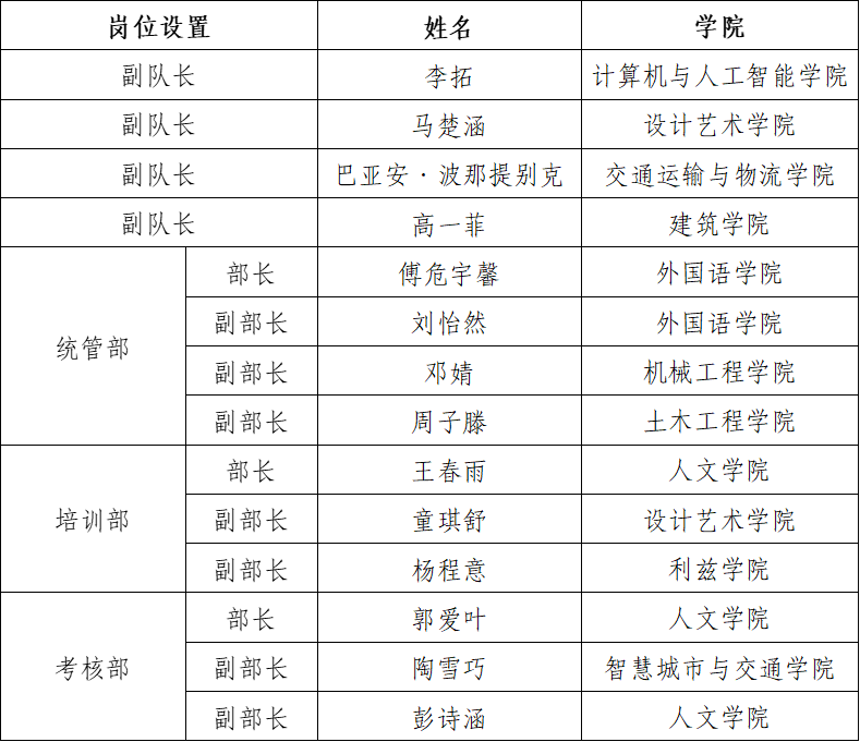 为进一步提升校礼仪队工作活力,充分发挥礼仪队为学校提供优质礼仪服务的重要作用。经过自主报名、资格复审、考核面试等环节,拟确定以下同学为礼仪队学生骨干。具体名单公示如下: