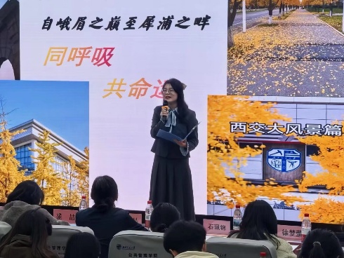 为落实立德树人根本任务,积极探索“美育+思政”育人模式,让学生在校园文化活动中实现“铸魂、增智、尚美”的综合育人价值,弘扬爱国精神,凝聚青年力量,激发学生奋斗精神,西南交通大学公共管理学院于11月28日晚21:00在九里校区J0231教室举办了以“丰碑回响铭铮铮铁骨,时代新声塑浩浩未来”为主题的第十三届梦想演说家活动决赛。本次比赛由公共管理学院学生会承办,公共管理学院主持队贾舒景担任主持人。