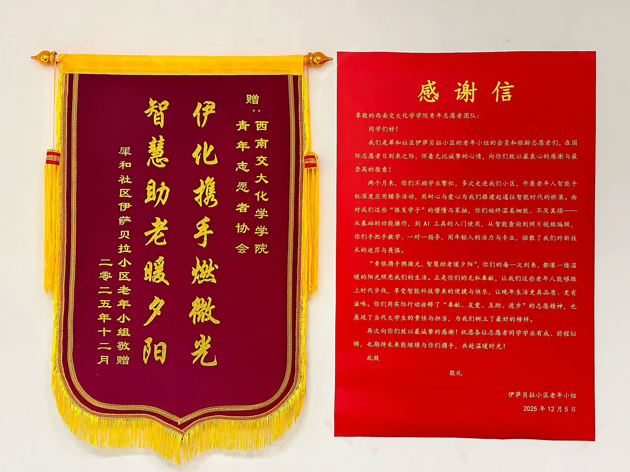 12月5日,在第40个“国际志愿者日”这个具有特殊意义的日子里,化学学院收到了一份来自伊萨贝拉老年小组的珍贵礼物——一封饱含深情的感谢信。信中,社区对化院青协长期以来深耕助老志愿服务的坚守给予高度赞誉,对志愿者们用实际行动践行“奉献、友爱、互助、进步”的志愿精神给予充分肯定。此次系列爱心助老活动中,化院学子立足专业所长,精准破解老年群体“数字困境”,以青春之力书写新时代青年的社会责任与使命担当。