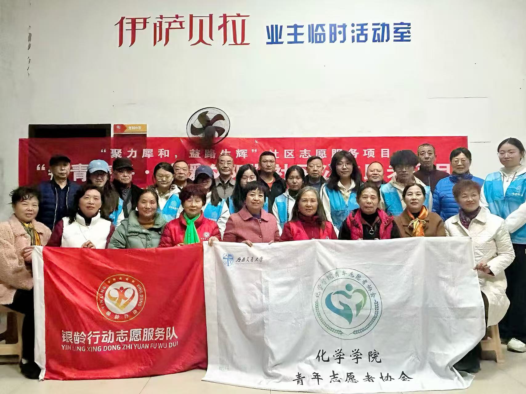 12月5日晚,志愿服务活动总结座谈会在社区会议室圆满举行。犀和社区党委副书记詹瑞和社区老年协会会长熊德全对化院志愿者们在活动中展现的青春活力、责任担当和专业素养给予高度评价,指出志愿者们以饱满的热情和专业的服务全身心投入,为社区和谐建设作出了重要贡献,服务成效显著,深受居民好评。