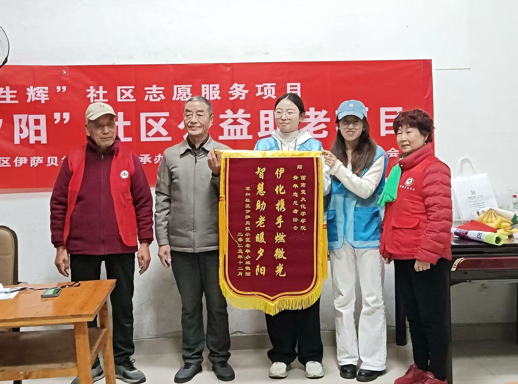 为表达对我院青协的诚挚感谢与高度赞扬,伊莎贝拉老年志愿者协会小组刘汉斌老师等代表社区向我院青协赠送锦旗,这不仅是对我院志愿者无私奉献精神的褒奖,更是双方携手并进,共育文明新风、共筑美好社区的生动见证。