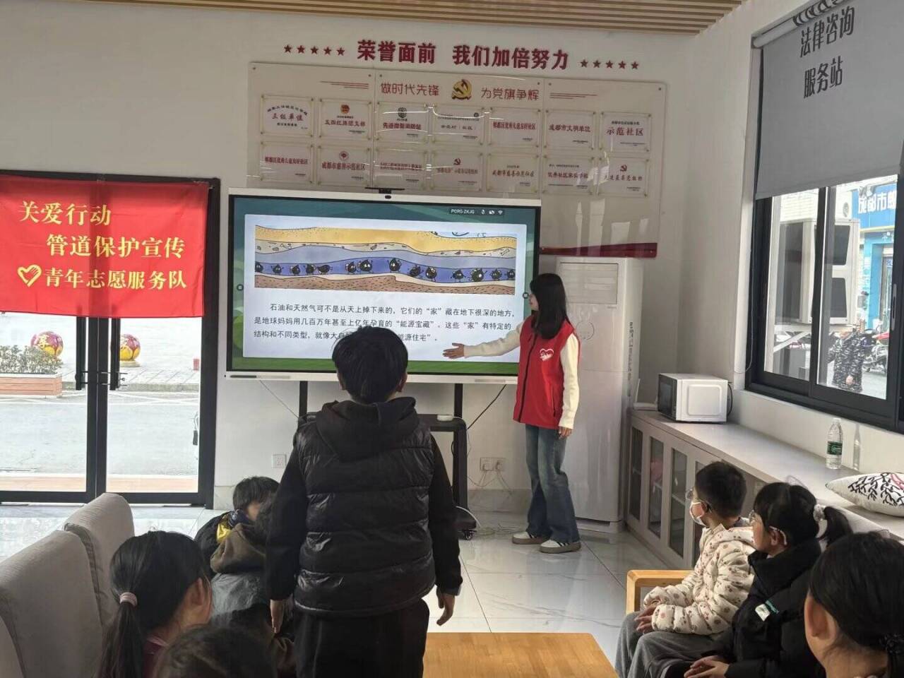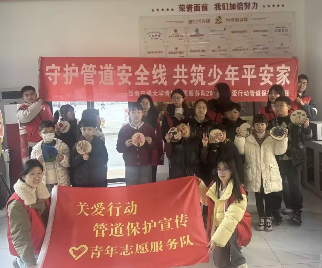 为落实国家能源安全建设相关要求,提升青少年儿童管道保护意识,2025年12月7日,西南交通大学青鸽志愿服务队走进喜安社区,面向辖区青少年儿童开展管道保护志愿宣讲活动,普及油气管道安全知识,强化能源安全与环保理念。