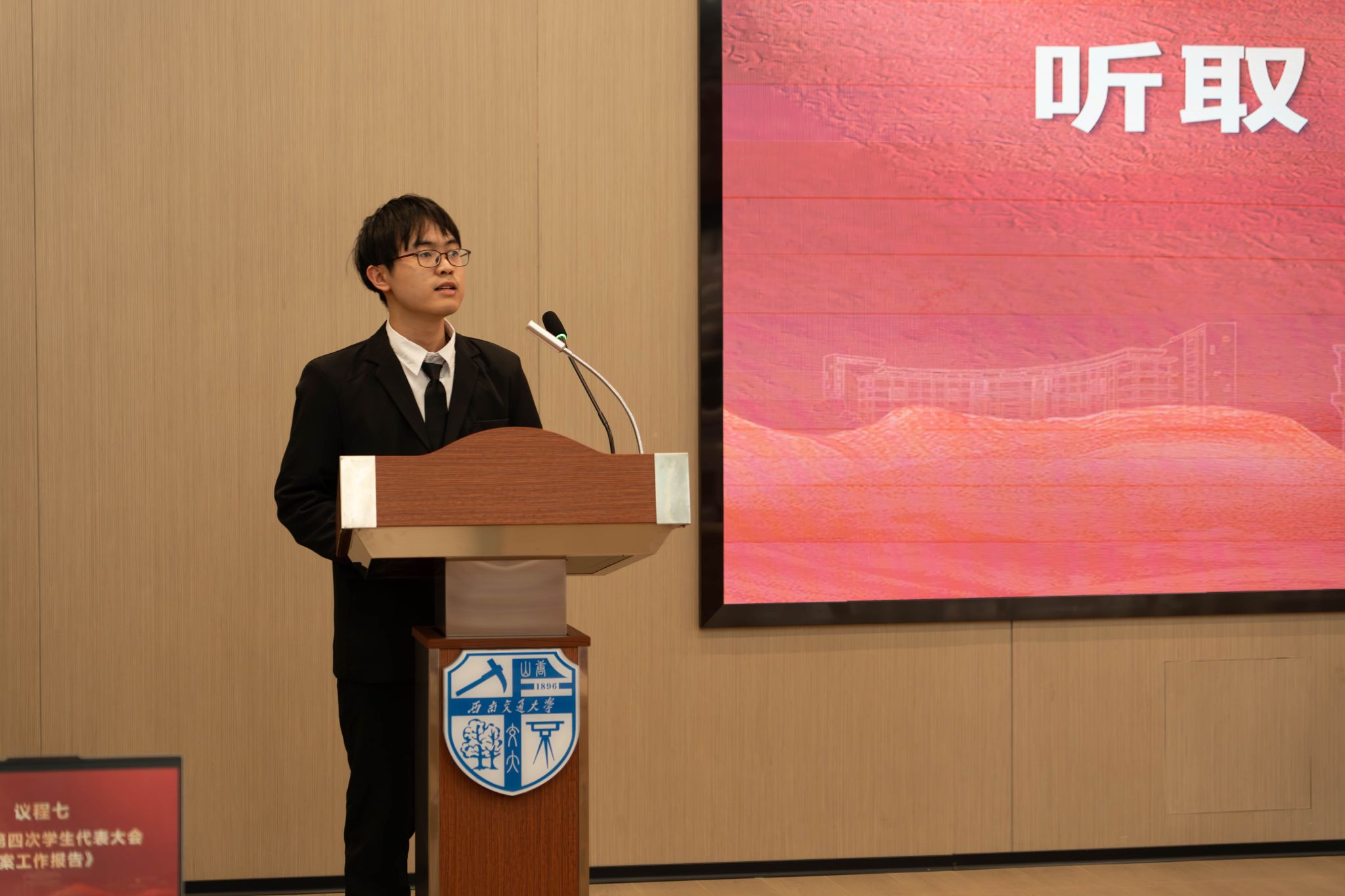 大会听取并审议了第四次学生代表大会提案工作组万嘉乐所作的《第四次学生代表大会工作提案报告》,详细汇报了学代会提案征集、审核、分类及办理进展情况,他强调提案工作是代表履职、学院践行“以学生为中心”理念的重要载体。
