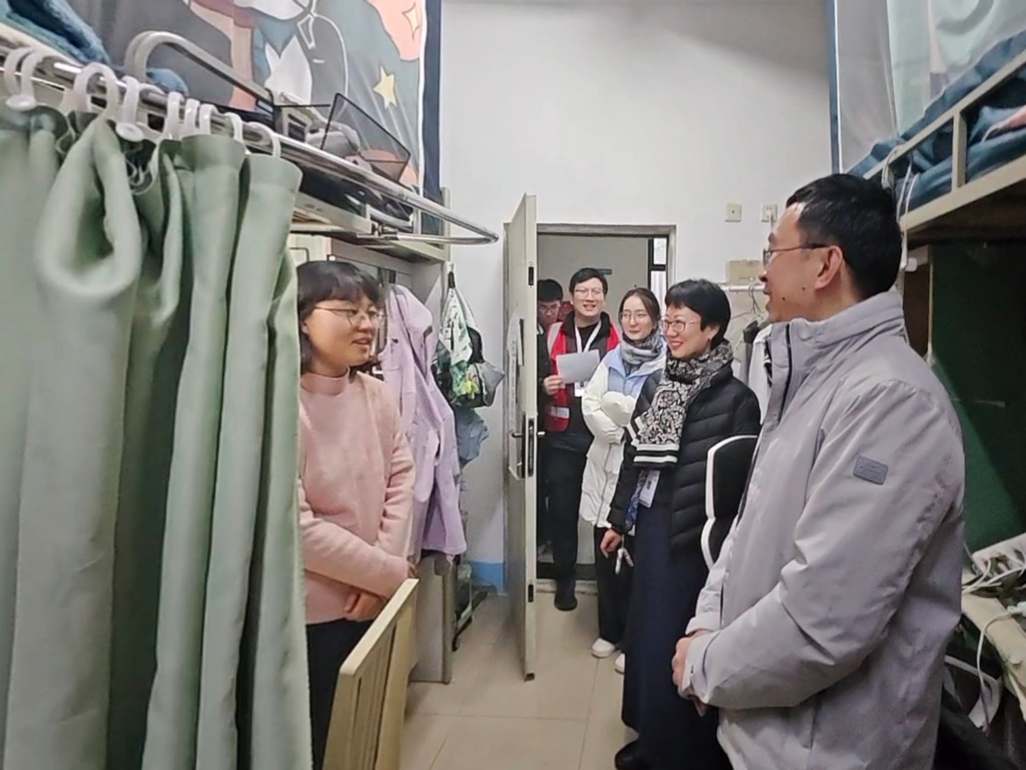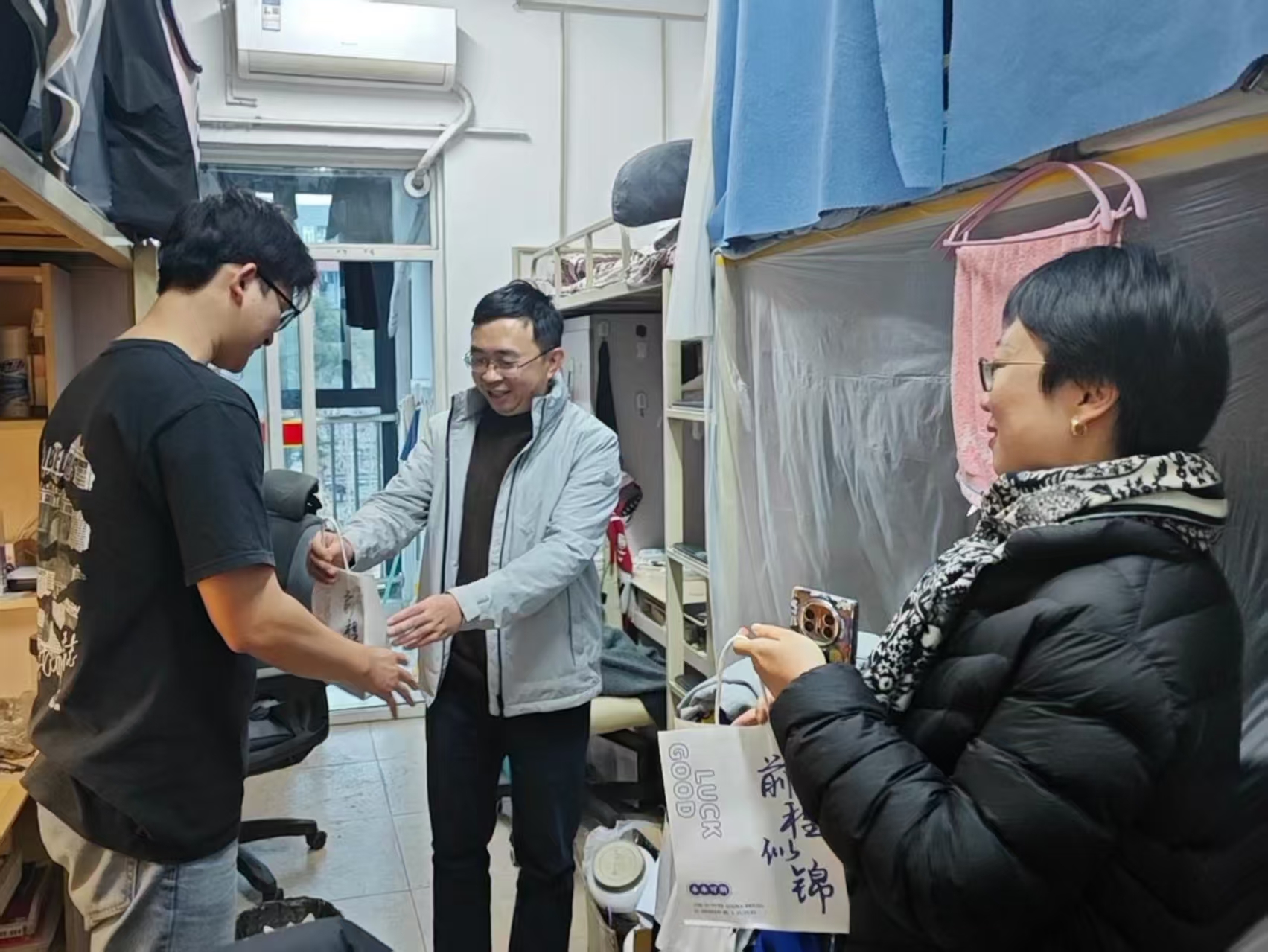 老师们集体深入学生宿舍,对留校同学表达了亲切问候,并向同学们致以新春的祝福。慰问过程中,建筑学院党委书记胡伟对考研学生提出了几点希望,一是希望同学们保持身心健康,保证作息,以最饱满的精神状态面对考试;二是时时刻刻要注意人身财产安全,注意寝室用水用电安全,多跟家里人沟通联系;三是祝愿同学们都能收获最好的结果。在交流过程中,毕业生们纷纷表示,此次慰问活动让大家感受到了学院的温暖与关怀。
