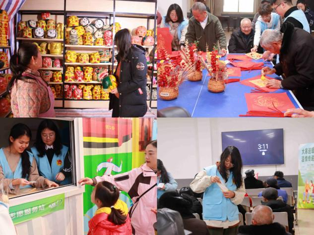为进一步推动劳动实践与社会服务相结合,实践队前往大邑蔡场敬老院,开展“大寒送暖·敬老传情”主题活动。队员们协助完成“扫尘迎新”环境美化,张贴春联、悬挂灯笼,以劳动营造节日氛围。在“围炉话暖”环节,队员们围绕节气图与老人们共话农事民俗,聆听往昔岁月中的劳动故事,随后一同参与猜灯谜、拓印福字等互动,在劳动中传递关怀,在陪伴中传承文化。