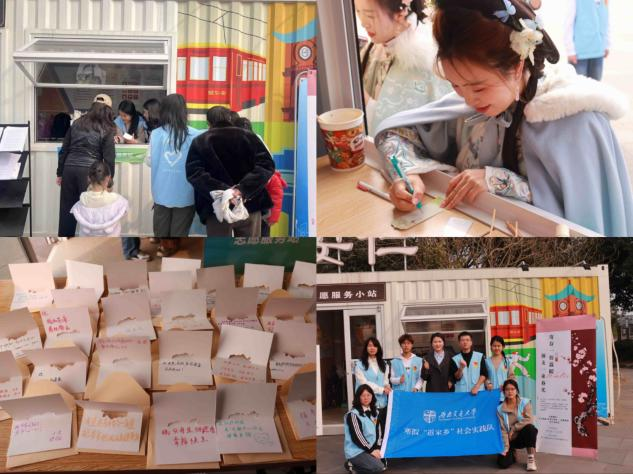 为促进劳动精神的传播与深化,实践队在安仁文博国际文化旅游管理委员会的协助下,于志愿服务站开展“寄存温暖,预支春光”街头互动活动。队员们邀请过往行人书写祝福、录制劳动记忆,以“情感劳动”兑换当季鲜花,在凛冽寒风中传递暖意。活动累计收集手写祝福42份、录音16段,并于次日送至敬老院。学子以花为媒,倾听民生温暖,践行“寒极必暖”的节气哲思,以劳动搭建代际沟通的桥梁。