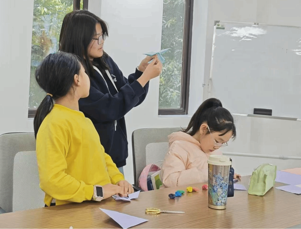 大学生志愿者精心设计的“非遗科普+趣味实验”课堂,将“漆扇晕染原理”等科学知识融入传统技艺。哥哥姐姐们用通俗易懂的语言讲解背后的科学逻辑,以“大朋友”的视角激发“小朋友”的好奇心,让孩子们在动手操作中既懂原理又会创作。