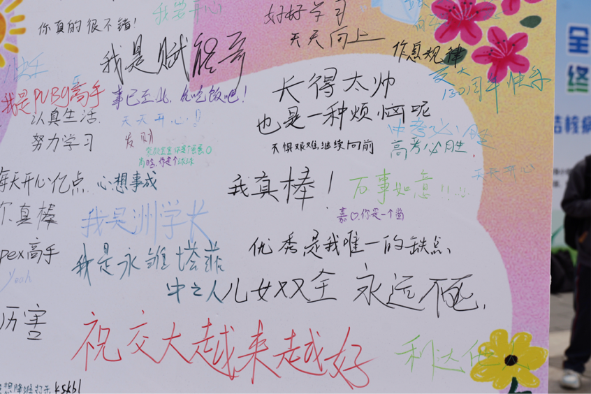 活动现场设置带有“325善爱我”标识的创作工具,引导学子在笑脸墙上画下对自我的善意鼓励、对交大建校130周年的真挚祝福,或是对“竢实扬华”精神的深刻理解。一张张色彩斑斓的笑脸,汇聚成充满力量的集体艺术作品,传递出“善爱自己、乐爱生活、热爱交大”的积极理念,成为校园里最治愈的风景线,在轻松愉悦的氛围中拉近了学子间的距离,增强了集体归属感。