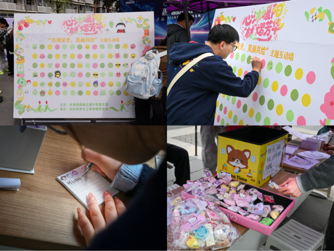 为深入推进新时代大学生心理健康教育,精准对接学生心理成长需求,将心理关怀与思想引领、交大精神传承、学生成长服务深度融合,引导学子在温暖治愈的氛围中涵养阳光心态、厚植家国情怀。3月25日至26日,材料科学与工程学院学生会于犀浦校区二食堂门口成功举办“心沐暖阳,‘材’熠芳华”3·25善爱我心理健康主题系列活动。
