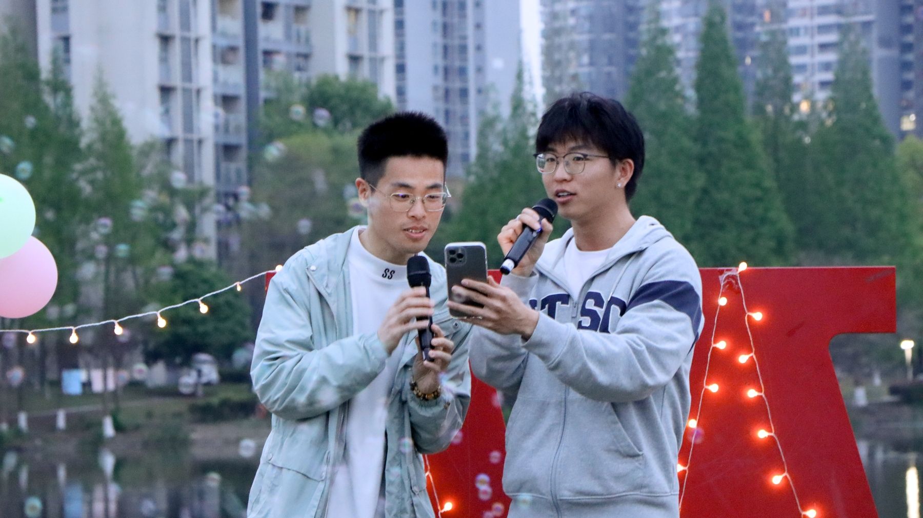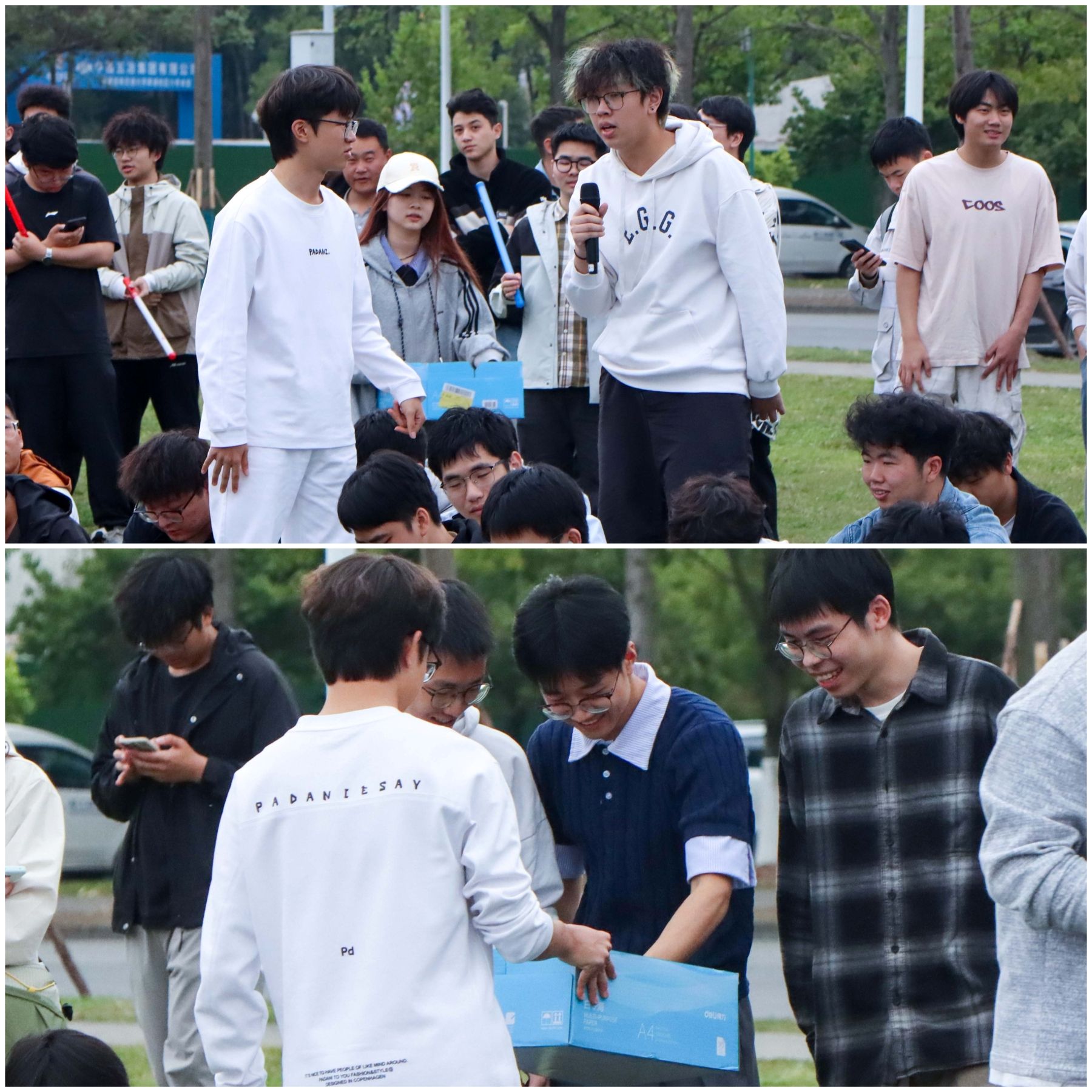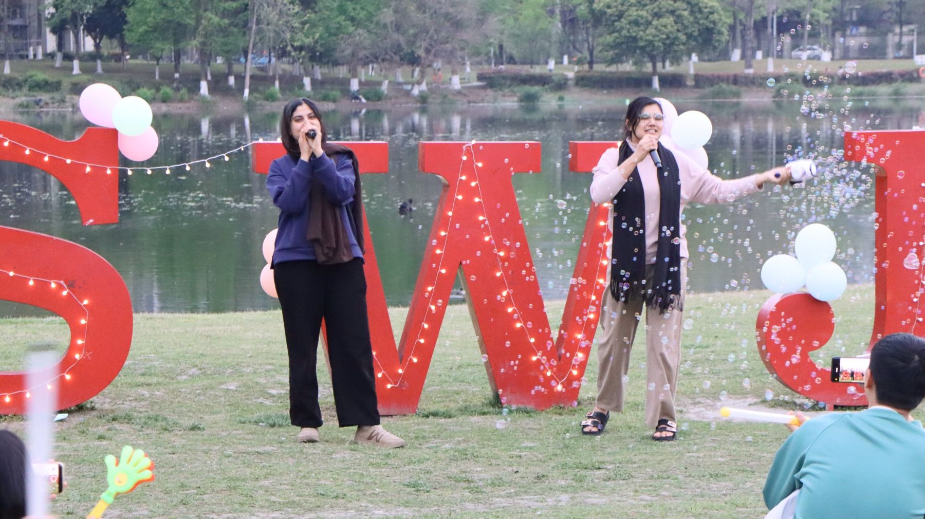 活动尾声,众多观众纷纷主动登台纵情高歌,不仅有朝气蓬勃的同学、亲切暖心的辅导员,更有两位外国朋友倾情助阵,大家用音乐打破隔阂,以歌声传递真挚情感,在旋律中释放激情与热爱,将整场音乐节的氛围推向顶点。