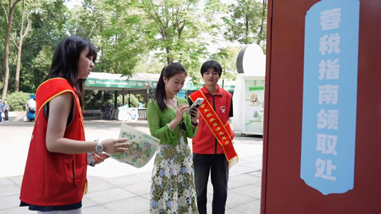 宣传过程中,志愿者们向游客免费发放税收宣传手册,围绕个人所得税缴纳、发票规范使用、消费涉税维权等与群众日常生活密切相关的内容,用通俗易懂的语言、生动鲜活的案例,细致讲解税收“取之于民、用之于民”的核心理念,结合游客出行旅游、青年就业实习、日常消费购物等高频场景,普及基础税法知识,破除涉税认知误区。针对游客提出的各类涉税疑问,志愿者们耐心倾听、细致解答,做到有问必答、有惑必解;在开展普法宣传的同时,主动为来自各地的游客指引游览路线、介绍园区特色,兼顾法治宣传与暖心服务。